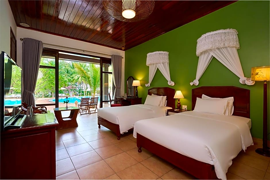 This villa is fitted with 2 single beds, an private bathroom equipped with a bathtub. It has a flat screen cable TV and offers views of the swimming pool.